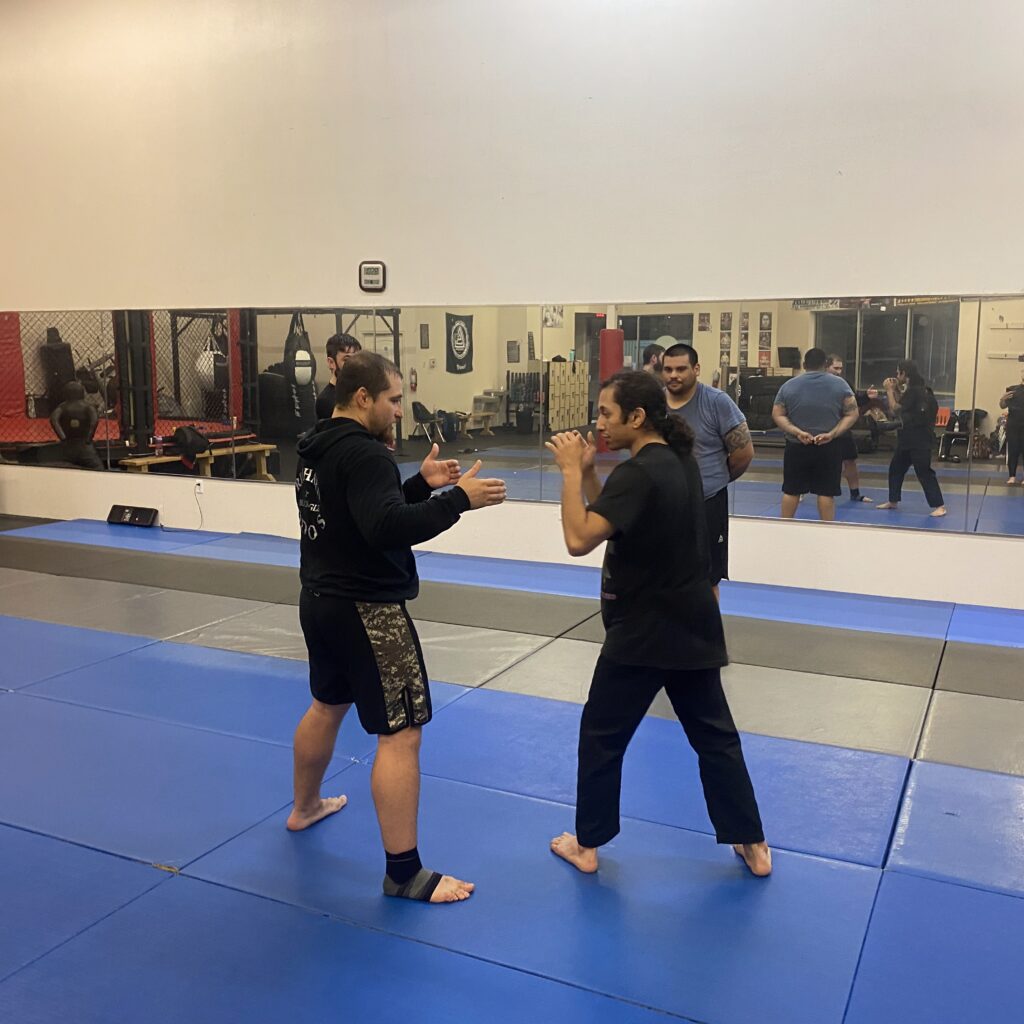 - Submission Grappling – This class focuses on no-gi grappling techniques used in BJJ, wrestling, and MMA based wrestling. Students learn takedowns, positional control, transitions, escapes, and high percentage submissions. Training emphasizes leverage, strategy, and technique–making it effective for all sizes and experience levels.